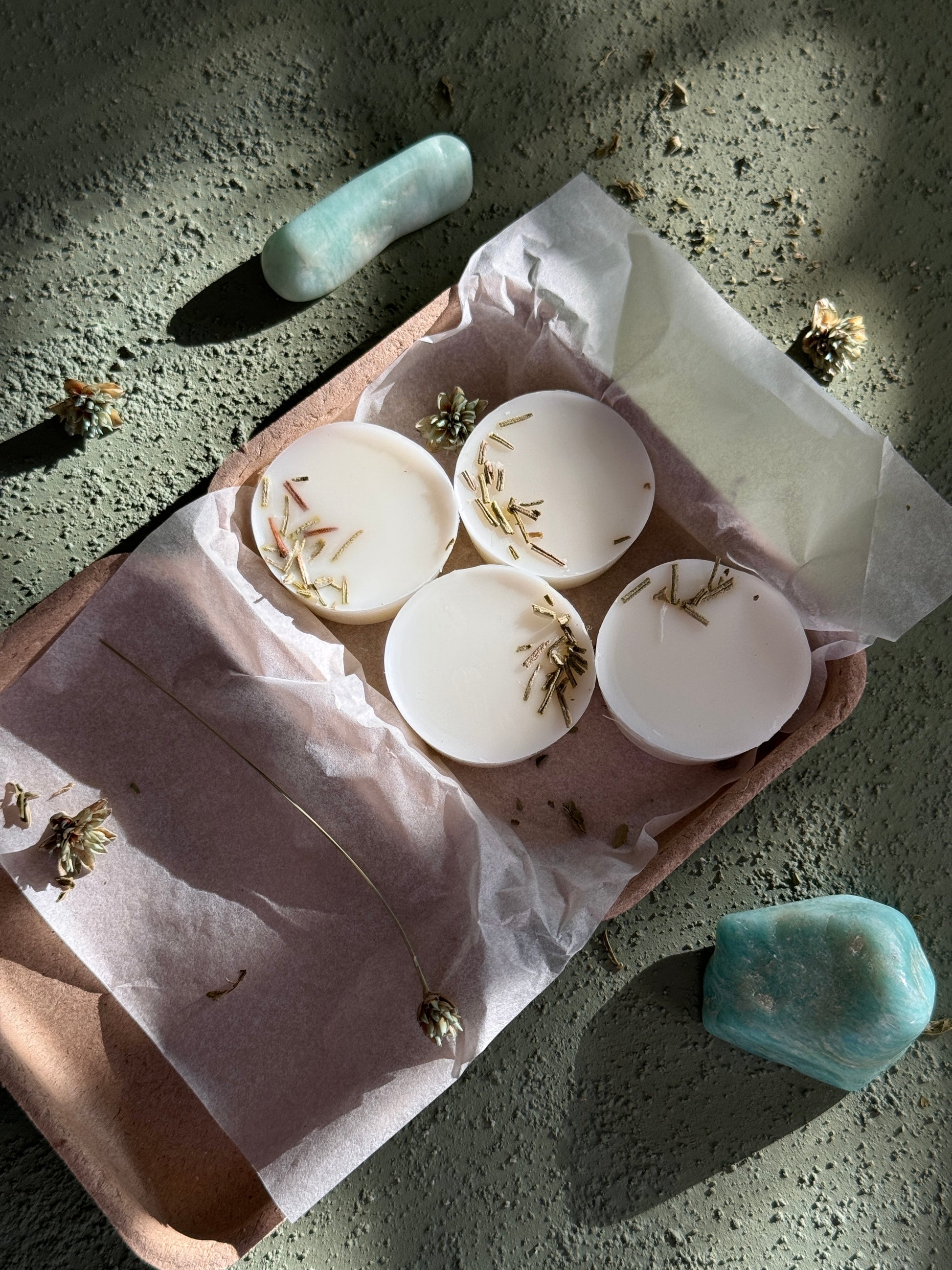 - Place one or two pieces in your wax warmer and wait for it to melt to feel the aromatic magic.